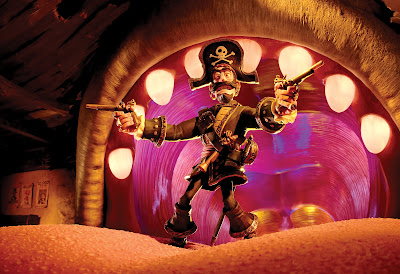 Efter WALLACE & GROMIT, FLYKTEN FRÅN HÖNSGÅRDEN och BORTSPOLAD ser vi förstås alla fram emot nya produktioner från Aardman (som även låg bakom den inte lika lyckade ARTHUR OCH JULKLAPPSRUSCHEN). I synnerhet de som – till skillnad från datoranimerade BORTSPOLAD och ARTHUR – är gjorda med claymationteknik. Okej, jag vet, det är ett annat material numera. Men ändå. Det handlar om dockor. Och den nya PIRATERNA! är en dockfilm i traditionell Aardmanstil.