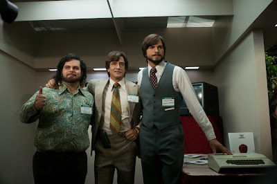 Steve Jobs framstår som en trist typ och som en skitstövel – enligt uppgift var han också en skitstövel. Fast jag vet inte om det är meningen. I typisk Hollywoodanda framställs han nästan som en kristusfigur, eller åtminstone som en populär amerikansk president. När han håller anföranden inför sina anställda fläskas det på med smetiga stråkar och publiken jublar och applåderar som på ett väckelsemöte. Killen som designar iMacen håller ett hyllningstal till Jobs som inte är av denna världen – självklart kommer de där stråkarna igen. Dermot Mulroney är finansiären Mike Markkula, Matthew Modine är Pepsi Cola-killen John Sculley, som blir VD för Apple och ser till att Jobs får gå, och JK Simmons är styrelseledamoten Arthur Rock. Kvinnor förekommer enbart i periferin.