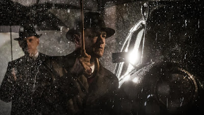SPIONERNAS BRO är inte speciellt spännande; hos Graham Norton sa Hanks att det är en film om folk som sitter ner och pratar, men det är en robust, gedigen produktion. Det är en intressant historia om en intressant period. Skildringen av Östberlin är fascinerande. Scenografi och detaljer känns övertygande, fast jag vet förstås inte om det verkligen såg ut- och gick till så. Jag gillade verkligen en scen från Västberlin, där rollfigurerna passerar en biograf på vilken man tydligt kan läsa vilka filmer som visas.
