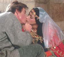 Redan 1982 hade jag två stora invändningar mot IVANHOE. För det första tar han på sig en ljusblå rustning. En blå! Herregud, han är ju för fan den svarte riddaren! Jag menar, hur fan ser det ut när den mystiske svarte riddaren gör heroisk entré, och så är han blå! Riddarsmurfen! Och den andra invändningen var förstås att Wilfred of Ivanhoe (som förresten har 80-talsfrisyr) väljer fel brud på slutet. Det tyckte jag även i 50-talsversionen, men det är värre i den här filmen. Storyn går ju ut på att vår hjälte är kär i både den fattiga judinnan Rebecca (Hussey) och den rika Lady Rowena (den då tonåriga Anthony), fast han är ju mer kär i kalaskexet Rebecca förstås, men han kan ju inte ha ihop det med en judinna. Så han väljer Rowena, och det är obegripligt. Lysette Anthony är blond och vän och, tja, hon påminner om en skär fis. Varje nyårsdag när man såg filmen, hoppades man att Ivanhoe äntligen skulle välja rätt, men icke! Han tillbringade säkert resten av livet med att titta på ALLSÅNG PÅ SKANSEN medan Rowena planerade parmiddagar.