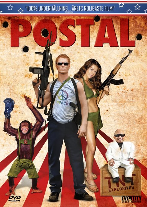 Här har vi så POSTAL på svensk DVD. Flera vänner och bekanta har tidigare bedyrat att den är jävligt kul och inte som Bolls andra filmer. Filmen är baserad på ett datorspel jag aldrig spelat, men för några år sedan stormade det rejält om spelet i svensk press, på grund av dess våldsamhet. Jag har ingen aning om vad spelet POSTAL handlar om, men om det är som den här filmen, kan det ju vara, typ, världens bästa spel.