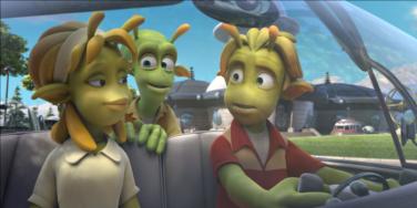 …Men mitt under en sådan händer plötsligt något oväntat: en månlandare landar i trädgården och ur den kliver astronauten Chuck Baker från Jorden. Han kör ner flaggan i marken – och först efter det upptäcker han att han inte är ensam. Självklart gör alla grönhyade Planet 51-bor stora ögon när det plötsligt kommer ett stort, vitt jordmonster klampande.