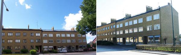 Farmor och farfars hus!!! Visar sig vara till salu just nu… Ingången var porten längst till höger, och minsann om inte Kävlinge GIF är kvar där – blå logga i fönstren. Min farmor och farfar bodde i Kävlinge. De bodde i ett gult hyreshus beläget precis mittemot kommunhuset. Min farfar var murare och om jag inte felinformerats, var han med och byggde kåken på 30-talet (1937, närmare bestämt) och flyttade sedan in där i en tvåa. Som barn tyckte jag det var spännande att hälsa på i Kävlinge. Farmor och farfars bostad liknande inget annat. Sovrummet hade de nämligen på vinden. Där, på den typiskt dammiga vinden vars ena sida var försedd med förråd med galler, hade de boende sina sovrum; det var som en liten inomhusgata med radhus med små fönster. När farsan var tonåring var detta vindsutrymme hans pojkrum; det finns ett foto där han sitter på rummet och skriver maskin och röker rak pipa (av det franska märket Ratos).