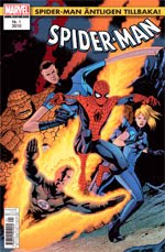 Nu köpte jag inte tidningen idag, men jag bläddrade som hastigast i den. Lite märklig layout på omslaget; loggan känns för liten. Däremot uppskattar jag att de återgått till den gamla, goa, ”riktiga” loggan från 1960- och 70-talen. Omslaget är tryck på tjockt papper och inlagan är också på bättre papper än brukligt, vilket förstås resulterar i en dyrare tidning. Rätt onödigt, tycker jag – superhjälteserier ska tryckas på taskigt papper. Längst bak i tidningen finns en liten artikel om Spindelmannens historia som tidning i Sverige.