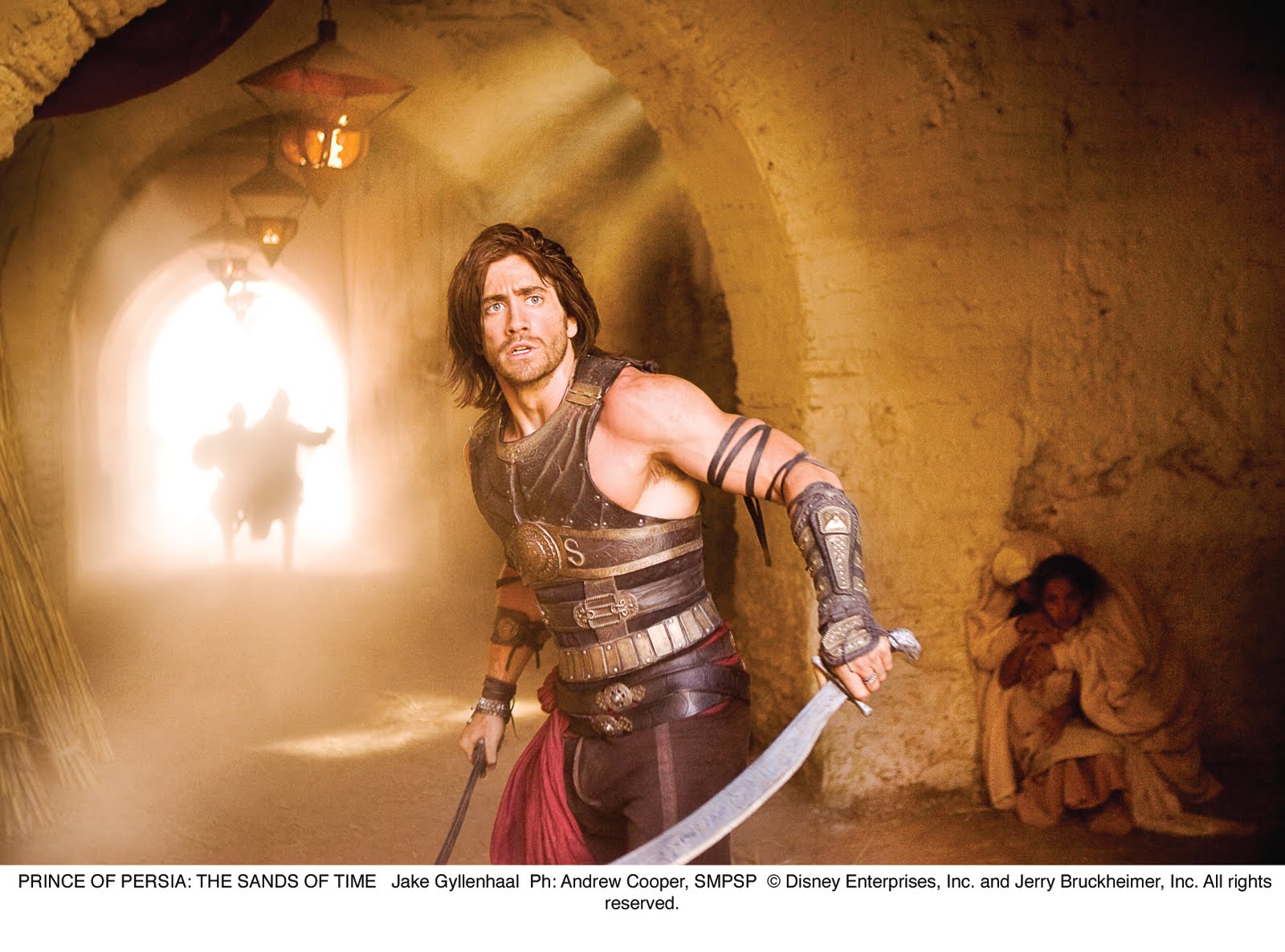 Jake Gyllenhaal är föräldralöse Dastan, som uppfostrats som en prins av kungen av Persien. Men efter att ha attackerat ett rivaliserande rike för att sno vapen, blir kungen mördad av någon av sina egna och den alltid gladlynte Dastan blir huvudmisstänkt och måste fly. Med sig får han prinsessan Tamina (Gemma Arterton) från det där andra riket, och tillsammans måste de hitta den riktige mördaren och upptäcka orsaken till lönnmordet. Det hela kretsar kring en magisk dolk som egentligen är en tidsmaskin i fickformat, och filmens skurk – som är PRECIS den ni tror det är – behöver den för att resa tillbaka i tiden och bli kung. Just det, efter att ha gnabbats och munhuggits, blir Dastan och Tamina kära i varandra, men det behövde jag förstås inte tala om.