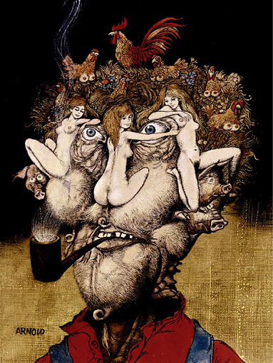 I slutet av 90-talet, när jag jobbade med Fantastisk Filmfestival i Lund, anordnade vi en utställning med Hans Arnold, som även fick pryda festivalkatalogen med en bild. Arnold själv kom ner till Lund och vi hade ett par trevliga middagar. Han var en synnerligen vänlig människa, Arnold.