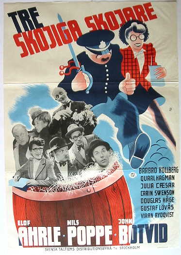 Elof Ahrles och Tage Holmbergs film var ett försök att göra en helgalen crazykomedi av en typ som var populär i USA. Det blev väldigt lyckat – och helgalet crazy. Elof Ahrle, Nils Poppe och John Botvid är Tom, Fabian och John: tre skojiga skojare som gärna stämmer upp i filmens klämmiga theme song; ”Vi är tre stycken skojiga skojare, oj oj oj-are, vilka stojare!”.