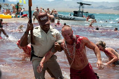 Här har vi så Alexandre Ajas pirayafilm. Det har diskuterats huruvida detta är en remake på Dantes film eller en tredje del i serien. Själv skulle jag nog påstå att detta är film nummer tre – men den skulle lika gärna kunna vara del ett i en helt ny serie.* Den har ingenting med de tidigare filmerna att göra.