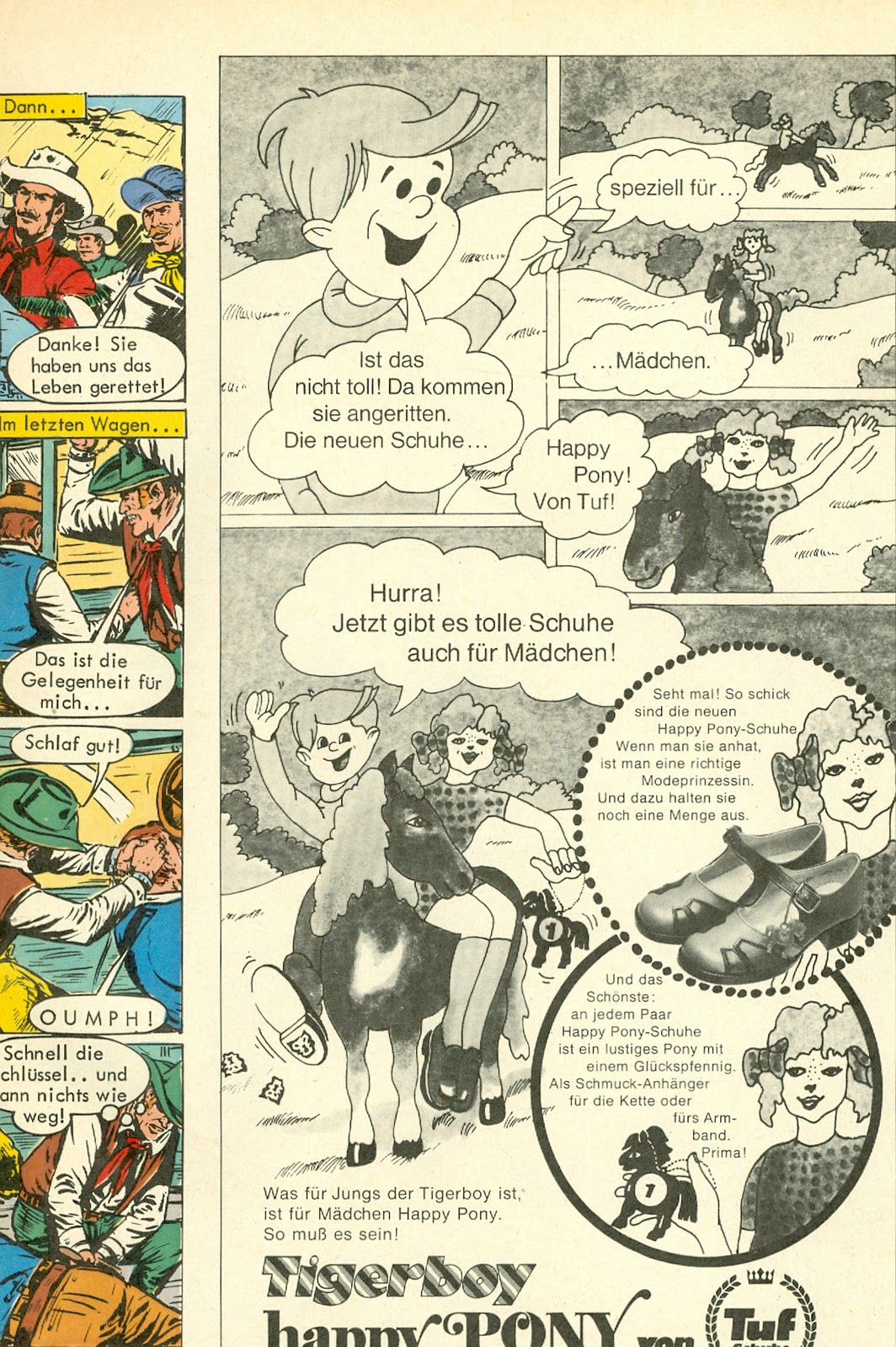 Aah… Tyska serier från Bastei… Det är något visst med dem. Vi 60-talister såg ju i oss en hel del på 70-talet – främst Silverpilen. De var alltid anonyma, oftast märkligt krafsigt tecknade, men det märkligaste av allt var placeringen av annonserna. De var inbakade i seriesidorna. Serierutor ersattes av annonser. När serierna sedan publicerades i Skandinavien ställde detta till med problem, så ofta ersattes annonserna av vitsar och annat dumt – mitt i rafflande västernäventyr.