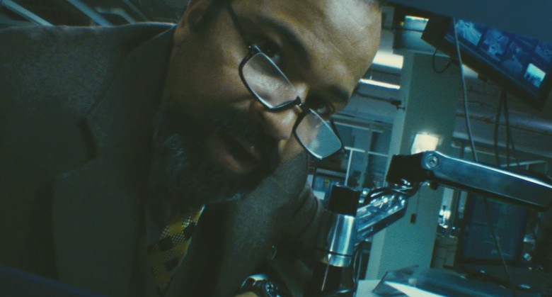 …Och Stevens vaknar upp, instängd i ett litet, mörkt, metalliskt rum. Via en bildskärm kommunicerar han med en officer som heter Goodwin (Vera Farmiga) och en mystisk herre vid namn dr Rutledge (Jeffrey Wright). Rutledge är mannen bakom något som fått namnet Source Code. Detta förklaras väldigt flyktigt med hjälp av kvantfysik och påhittad teknisk jargong och annat som förstås inte behöver läggas fram i detalj. Rutledge har kommit på ett sätt att låta människor uppleva det förflutna. Det är ingen tidsmaskin, men man får uppleva dåtid i en annan människas kropp – i något slags parallellvärld. Och bara under åtta minuter. Varför just åtta? Hur ska jag kunna veta det?