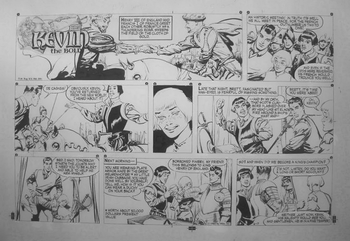 … Eller vad ska man säga om Roland den Djärve? Av någon anledning ville Fantomen tvunget ha med en riddarserie. Detta känns väääldigt avlägset idag. Riddarserie? Nå. Valet föll alltså på denna amerikanska serie från 1950, som i original hette Kevin the Bold och som utspelade sig på 1500-talet. Jag tyckte att Roland den Djärve var en fruktansvärt trist och träig serie när den dök upp 1977, och teckningarna fick mig inte att vilja läsa äventyren. Efter ett par avsnitt började jag hoppa över serien, som tack och lov inte blev långlivad i tidningen.