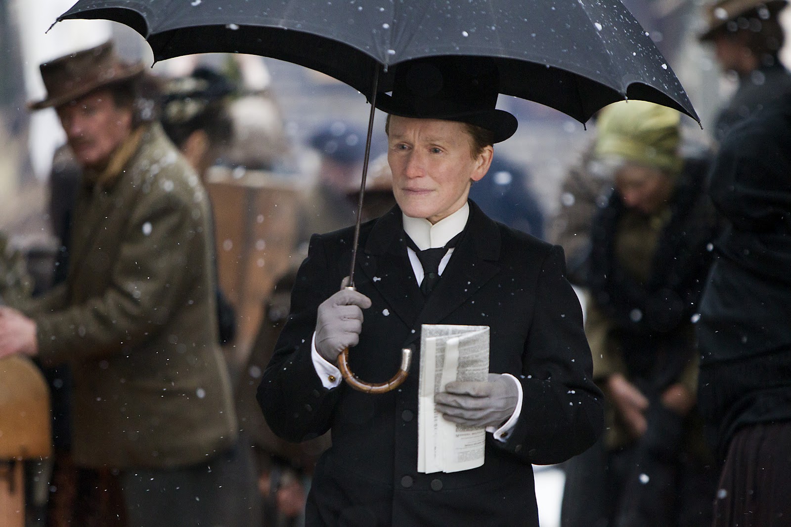 Jag måste erkänna att jag aldrig hört talas om ALBERT NOBBS innan årets Oscarsnomineringar tillkännagavs. Rodrigo Garcías film fick nämligen tre nomineringar; Bästa kvinnliga huvudroll (Glenn Close), Bästa kvinnliga biroll (Janet McTeer) och Bästa make-up. Den vann dock inga priser. Efter Oscarsgalan brydde jag mig inte om att kolla upp filmen, så när det var dags för pressvisning kände jag bara till det faktum att Glenn Close spelar man. Rättare sagt, hon spelar en kvinna som spelar en man.