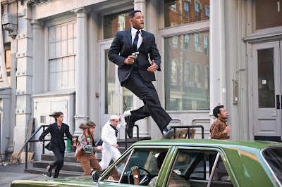 Som helhet är MEN IN BLACK 3 inget speciellt. Den känns onödig och lite halvtrist. Här och var blänker det till, det dyker upp lustiga rymdvarelser, Emma Thompson är rolig, och visst lyckas Smith, Jones och Brolin skjuta iväg några oneliners. Men filmen är saggig och ointressant. Man har inte gjort något av det faktum att en stor del av filmen utspelar sig 1969. Det första som händer J detta årtal är att två rasistiska poliser behandlar honom illa, eftersom en svart man omöjligt kan bära dyr kostym och köra en flott bil. Sedan hamnar de på The Factory, där Andy Warhol och New Yorks innefolk festar loss (kul idé). Slutuppgerelsen sker på Cape Canaveral när månraketen ska skjutas upp. Men det är allt. J råkar inte ut för några kulturkrockar och 60-talsmiljöerna är för få.