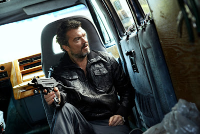 … Men i övrigt är det illa. Handlingen känns lite dum och simpel, och flera inslag är direkt idiotiska. Som Mrados flykt. Killen sitter i rullstol, ändå lyckas han övermanna flera poliser och rulla genom långa korridorer utan att haffas. Och strax därefter tar sig han och JW in i en skog, där de gräver upp gömda vapen. Mrado är alltså rullstolsburen. Och rullas in mitt i en skog. Där han utan problem hittar de nergrävda prylarna.
