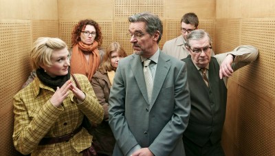 Men resten är bara i vägen. Det här är en medvetet udda och lite arty film. Färgskalan går i grått, allting är stiliserat och det är lätt att associera till Roy Andersson. Men Eklund är ingen Andersson (däremot är jag en Andersson, om än ingen Roy). Jag antar att filmen utspelar sig i nutid, men de många tekniska prylar som förekommer är från 1980- och 90-talen, och folk klär sig som vore det 70-tal. Humorn påstås vara skruvad, och jodå, nog är det här bisarrt, alltid.
