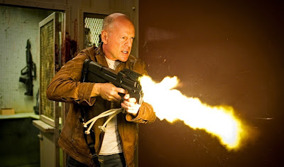 Joseph Gordon-Levitt är sminkad för att likna Bruce Willis och har bland annat försetts med en näsa som liknar Willis’. Fast jag tycker nog att Gordon-Levitt snarare liknar en väldigt, väldigt ung Robert DeNiro. Men han är mycket bra i rollen, Gordin-Levitt. Och det är kul att återigen få se Bruce Willis i en vettig roll.