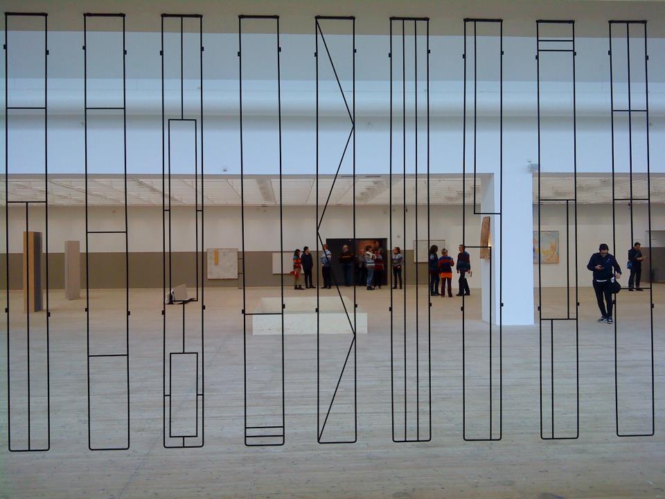 Okej, ett av verken gillade jag. Något slags vackert galler det är intressant att beskåda lokalen genom.