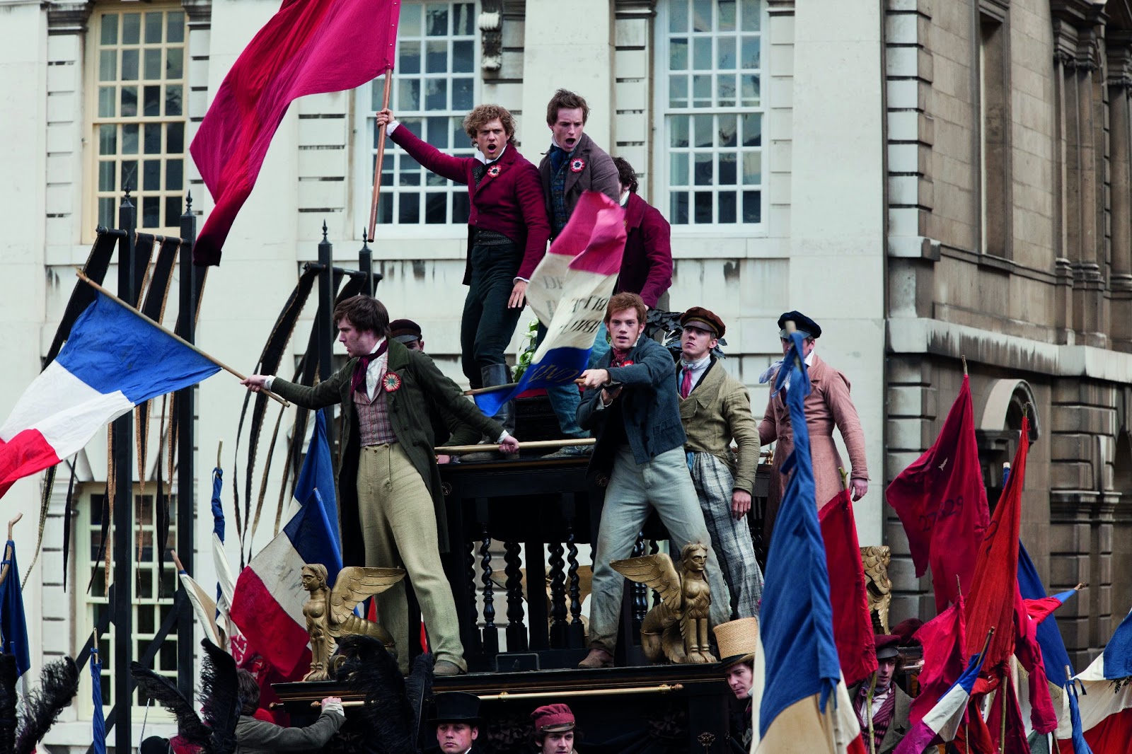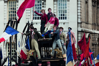 Wolverine, gladiatorn, Catwoman och, öh, Borat upplever dramatik och elände, mest elände, i Frankrikes slum i början av 1800-talet. Hugh Jackman är Sean Banan, tyckte jag först att de sa, men det visade sig att han heter Jean Valjean, som suttit i fängelse i nitton år efter att ha stulit ett bröd. Han rymde visst och blev borgmästare. Jävla flyt. Russell Crowe är den nitiske polisen som inte kan glömma Valjean. Anne Hathaway får sparken från sitt jobb och säljer sitt hår och en tand och prostituerar sig för att kunna försörja sin dotter. Det går några år och dottern växer upp till Amanda Seyfried. Hathaway dog nog när jag sov, eftersom hon plötsligt var väck. Men folk dör som flugor mest hela tiden.