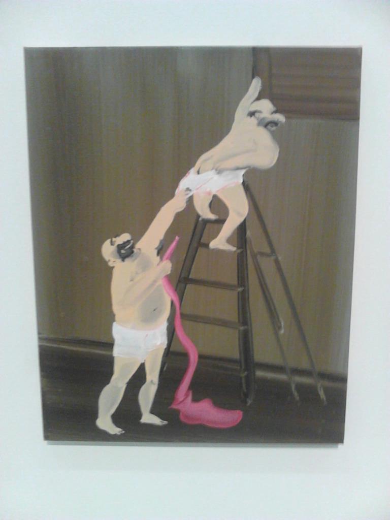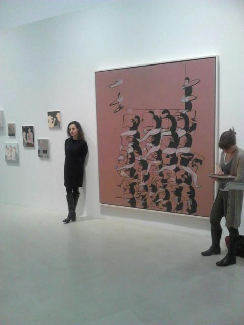 ”Rip Image”, som består av målningar och animationer, och enligt uställningens två curatorer arbetar tala Madani med ”politiska ämnen som inkluderar maktstrukturer, maskulinitet och gruppdynamik. En kontrast, mellan humor och allvar, lek och hård verklighet”. På pressvisningen passerade jag en äldre dam, konstkritiker sedan länge, och hon sa lite halvviskande till en i personalen att hon tyckte att verken är taffligt utförda, sällan estetiskt tilltalande, ämnena uttjatade och banala.