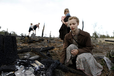 Nu kommer Cate Shortlands australisk-tyska och betydligt mer realistiska LORE – en film som handlar om nazisternas barn. Kriget går mot sitt slut och femtonåriga Lore (Saskia Rosendahl) och hennes fyra småsyskon bor med sin överygade nazist till mor i ett stort, fint hus i Schwarzwald. Farsan är ute och slåss i kriget. Egentligen skulle jag nog inte ha något emot en film som bara handlar om detta, för det har jag verkligen aldrig sett: en film om glada, rika och välartade nazibarn som dansar och skuttar omkring i SOUND OF MUSIC-miljö. Men redan efter ett par minuter kommer den älskade fadern hem och sätter genast igång att elda upp foton och papper. Allt är över och de måste fly; de allierade är på väg.