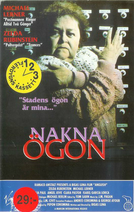 För min egen del är Bigas Luna en sådan där herre vars namn är mer känt än hans produktion. Jag tittar på hans filmografi och undrar om jag sett någon mer film än hans mest kända; ANGUSTIA (1987), bättre känd som ANGUISH. Jag minns när jag alldeles i början av 1990-talet gick in på Broadway på Eriksgatan (Broadway blev senare Hemmakväll – jodå, Hemmakväll är ett Landskronaföretag) och hittade en film med titeln NAKNA ÖGON på nyhetshyllan. Jag hyrde den, köpte något godis, gick hem och satte på kaffe och såg filmen. NAKNA ÖGON var förstås ANGUISH, som lanserades som skräckfilm och som gjorde intryck på- och uppskattades av de flesta som såg den. En märklig, surrealistisk metafilm med Zelda Rubinstein och Michael Lerner. Jag har dock inte sett om filmen sedan dess.