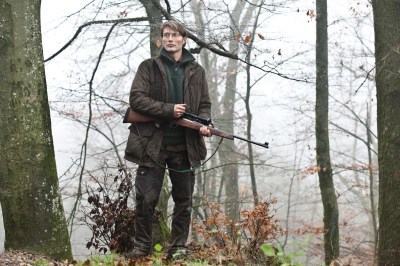 På sin fritid umgås Lucas med sina polare i ett jaktlag – de skjuter hjortar, dricker öl och har kul på ett grabbigt sätt (och jag kommer att tänka på när jag en gång partajade med Mikkelsen och han skulle visa sitt öltrick. Det ska jag berätta om. Någon gång). Lucas bäste vän heter Theo (Thomas Bo Larsen), vars dotter Klara (Annika Wedderkopp) går på Lucas’ förskola. Klara gillar Lucas, hon gillar hans hund Fanny, och när Theo och hans fru bråkar brukar Lucas ta hand om Klara.