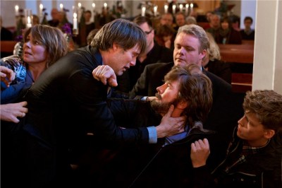 Helt klockrent är det här inte. Vid ett par tillfällen går man lite för långt. Det känns lite för otroligt och orealistiskt att personalen på snabbköpet brutalt spöar skiten ur Lucas offentligt inne i butiken – det borde rimligtvis leda till rättsliga påföljder där personalen får bita i det sura äpplet. Vidare är det väl inte speciellt genomtänkt att förskolans personal tar upp ämnet och outar Lucas på ett föräldramöte redan en dag eller ett par efter att Klara slängt ur sig sin lögn. Och nog borde väl fler ifrågasätta det Klara berättar. Varför skulle Lucas plötsligt visa sig vara pedofil? Något de flesta av hans vänner genast köper. En av kompisarna örfilar dessutom upp Lucas’ son så att han blöder.
