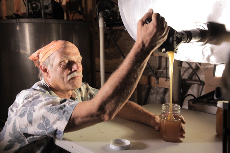 På den stora amerikanska bi- och mandelranchen går det annorlunda till. Där är allt toppmodernt. Fast killen som intervjuas, jag gissar att han är något slags chef, gillar inte att de måste bespruta mandelträden. Bina tar skada – vilket inte är så konstigt. Killen med stekmössan är liksom schweizarna härligt gammaldags. Han är hemma hos folk och skrapar ner bikupor och har sig och gör honung på traditionellt sätt – det ser onekligen väldigt gott ut när han manuellt tappar upp honungen på burkar. Fast vad de gör borta i Peking blev jag inte riktigt klok på.
