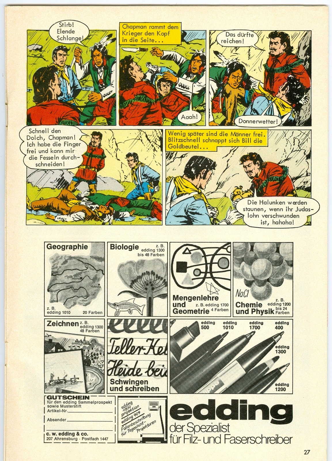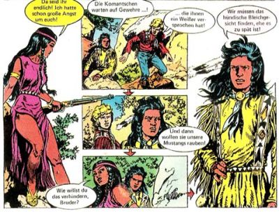 Jag låter mig inspireras av … mig själv. Häromdagen skrev jag ju en text om maskerade westernhjältar. Jag kom osökt att tänka på andra westernserier jag läste på 1970-talet – som alla de där konstiga tyska serierna.
