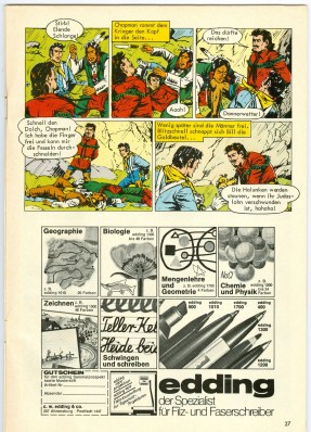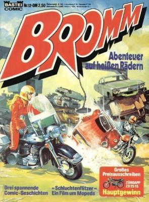Apropå de här tidningarna måste jag även nämna Broom, som Allers gav ut 1978-1980. Nej, det var ingen westerntidning, utan handlade om motorsport och motorentusiaster. Men detta var också en tidning med serier från Bastei – med annonser insprängda i seriesidorna. Broomm var i magasinsformat och något bättre tecknad än Silverpilen, åtminstone tyckte jag så på den tiden. Jag tyckte att serierna påminde om fransk-belgiska seriealbum.