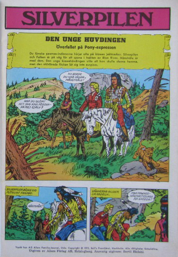 Av någon anledning gillade jag Silverpilen som barn. Åtminstone läste jag tidningen hyfsat regelbundet; jag hade många nummer av tidningen. Men antagligen slukade jag allt som innehöll vilda västern-serier. Serierna i Silverpilentidningen var anonyma; upphovsmännen uppgavs aldrig, serierna var krafsigt tecknade, ibland direkt skissartade – och redan då tyckte jag att det var något konstigt med dem. De innehöll reklam insprängd i seriesidorna; i själva serien – serierutor byttes ut mot annonser, och ibland låg där instoppade vitsar. Jag gissar att det sistnämnda berodde på att Allers inte hade några annonser att placera där. Ibland fanns det kortare utfyllnadsserier på mittuppslaget, och som jag minns det var dessa av någon anledning trycka på gult papper. Vad hette nu den där serien om kängurun? Skippy? Eller det var kanske inte i Silverpilen den figurerade?
