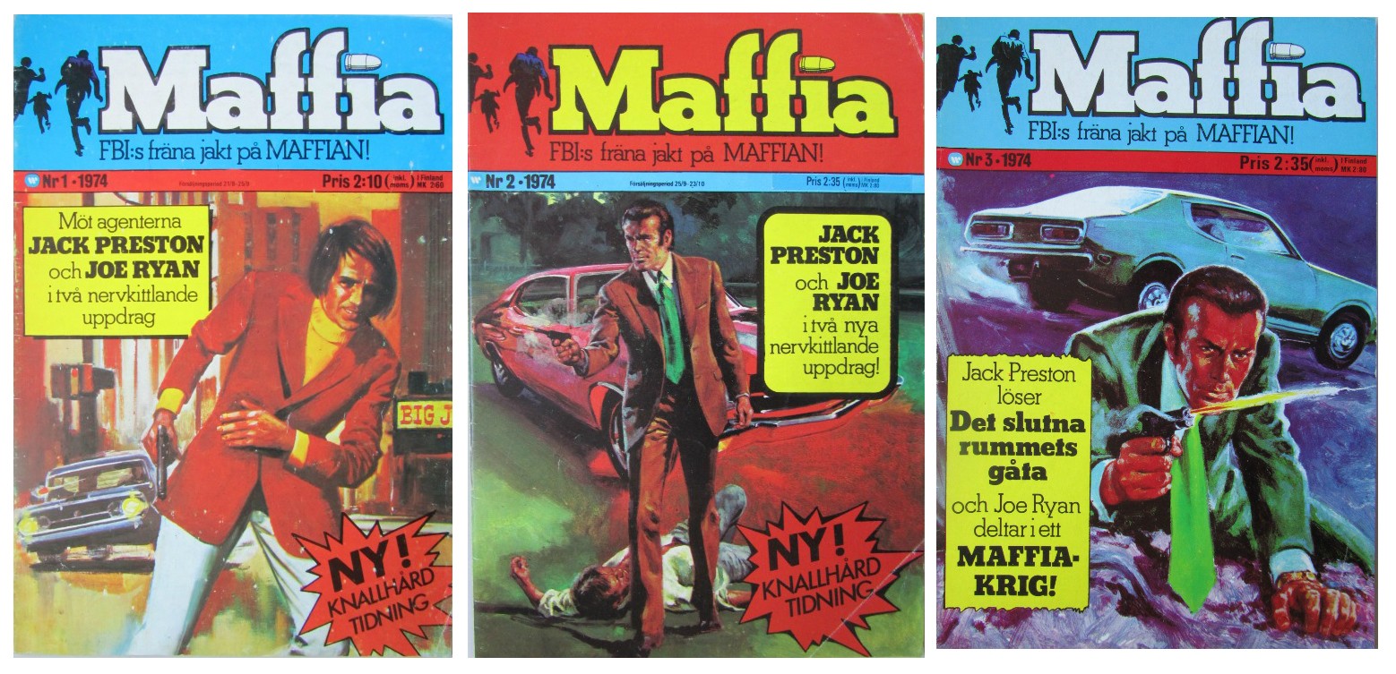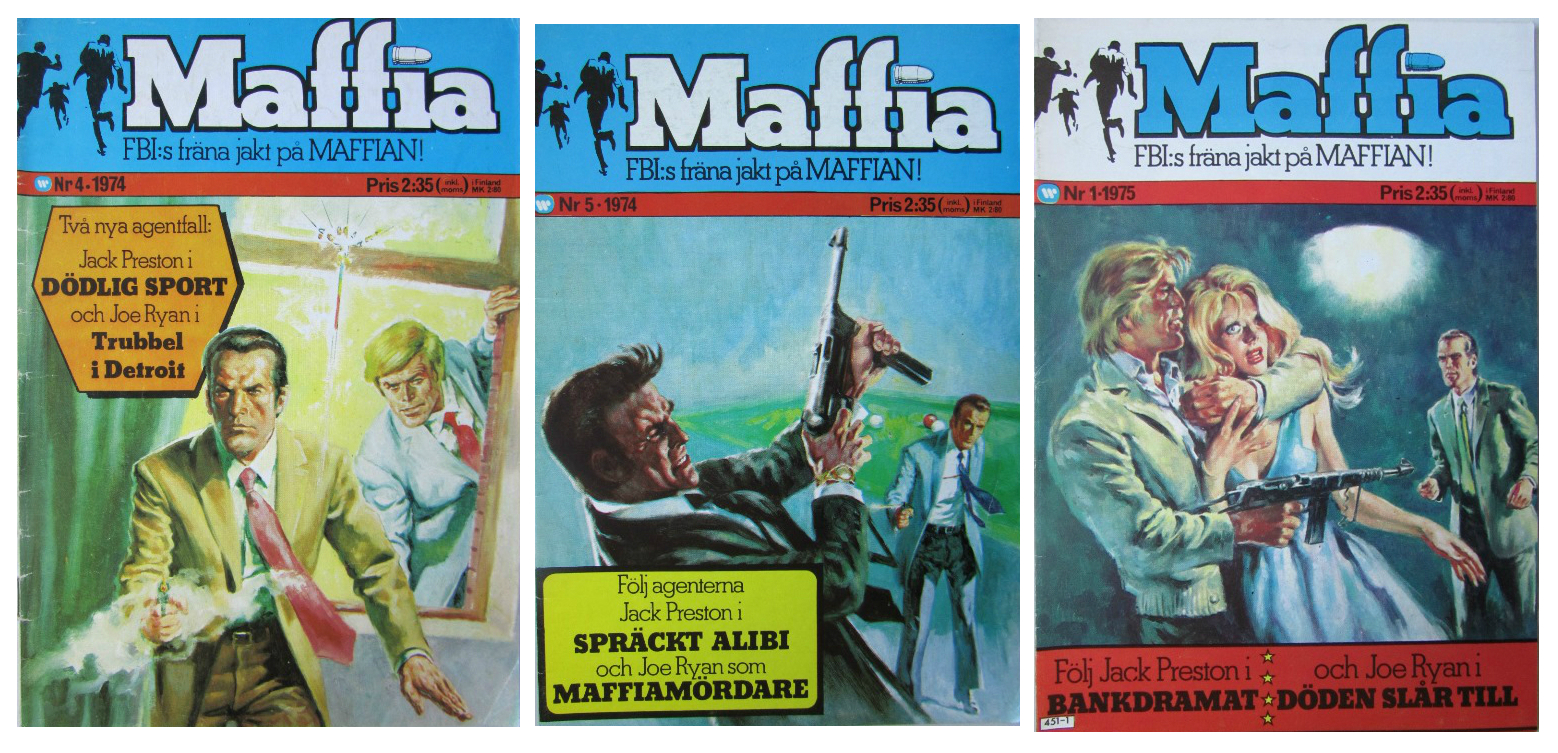 I början av 70-talet kom ju som bekant de ohemult populära GUDFADERN-filmerna, så självklart fanns det behov av en serietidning om maffian. Bland annat därför startade Williams förlag tidningen Maffia, som kom ut med elva nummer 1974-75. I denna kunde man läsa om Jack Preston – Maffiabekämpare och Joe Ryan, och i de två sista numren (vilka jag aldrig läst) introducerades Joe Polanski. Dessa tre herrar var FBI-agenter och gjorde sitt bästa för att bekämpa maffian. Jag antar att det hade varit för magstarkt att 1974 producera en serietidning i vilken det var maffiamedlemmarna som var huvudpersoner.