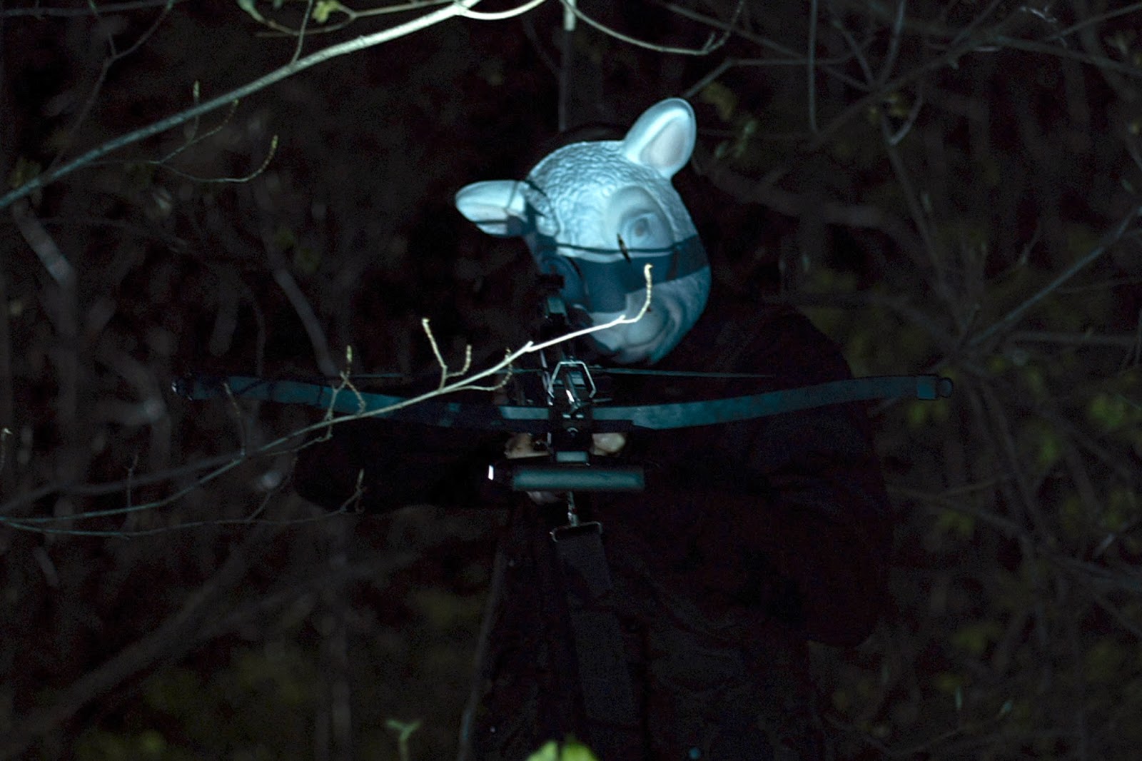 När familjen sitter till bords och äter bryter plötsligt och oväntat helvetet löst. Regissören Ti West (THE HOUSE OF THE DEVIL, THE INNKEEPERS) har en liten roll som pojkvän till en av döttrarna Davison, och han är den första som stryker med. Mitt under middagen får han nämligen en armborstpil i pannan och dör. Någon eller några gömmer sig ute i den nattsvarta trädgården och skjuter pilar genom fönstren.