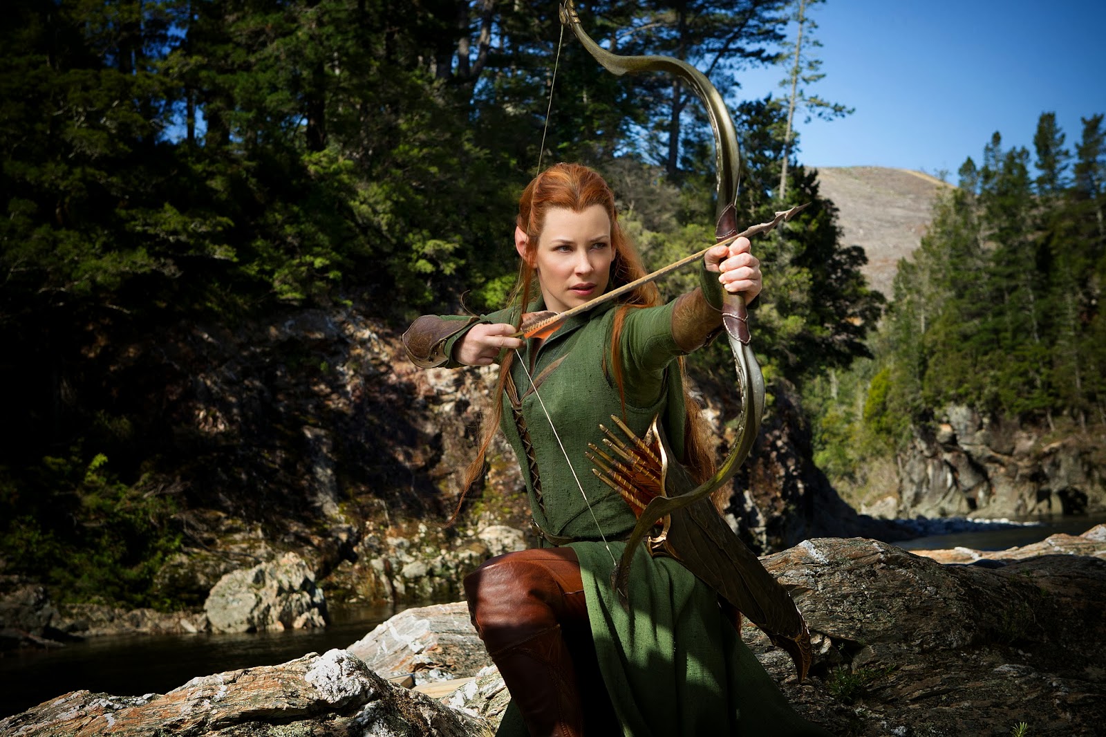 Nå. Dvärgarna flyr från alverna och träffar på bågskytten Bard (Luke Evans), som motvilligt hjälper dem och tar dem till den fallfärdiga Sjöstaden, där han bor med sin familj. Jag har alltid tyckt att Luke Evans är lik Orlando Bloom, så det är ju förvirrande att båda är med här. Fast Evans ser ut som en äldre och manligare Bloom. Bard är den enda mänskliga hjälten i berättelsen.