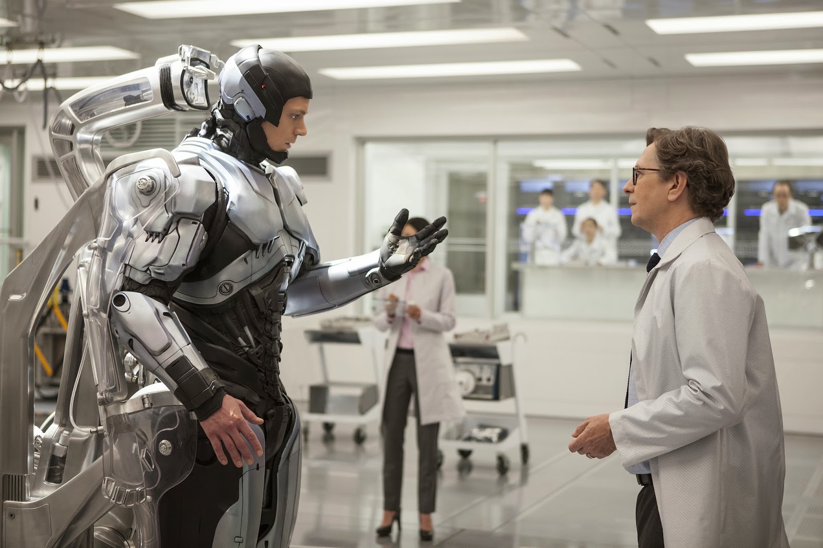 Murphy sprängs i luften när någon placerat en bomb i hans bil, och den schysste doktor Norton (Gary Oldman) bygger om den stackars lemlästade snuten till RoboCop. Här kommer den största skillnaden mot originalet: Robo har inte fått sitt minne raderat. När han vaknar upp är han fortfarande Alex Murphy. Han har känslor, han vill vara med sin fru (Abbie Cornish) och son, han träffar dem och vill fortsätta att vara en familj – trots att han nu är en robot. Han fäller till och med några tårar när han tänker på familjen och sin situation. Vaffan? RoboCop gråter? Herregud, när RoboCop är ledsen slår han ju näven genom en TV-apparat!