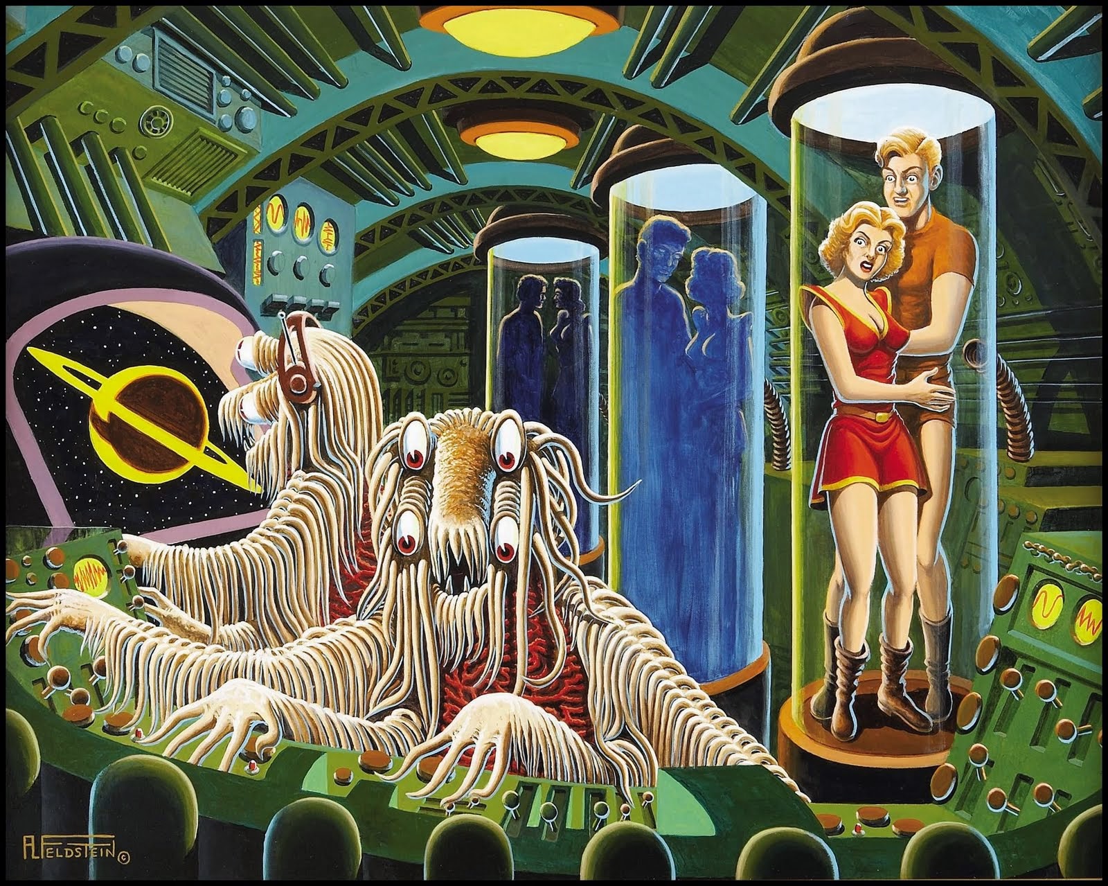Efter att ha gått i pension började Feldstein att måla tavlor i akryl. Han flyttade till Wyoming, och där; mitt ute i vilda västern, satt han och målade av djurlivet. Men tydligen gjorde han även en del science fiction-målningar. Jag hittade några på nätet och de ser rätt läckra ut.