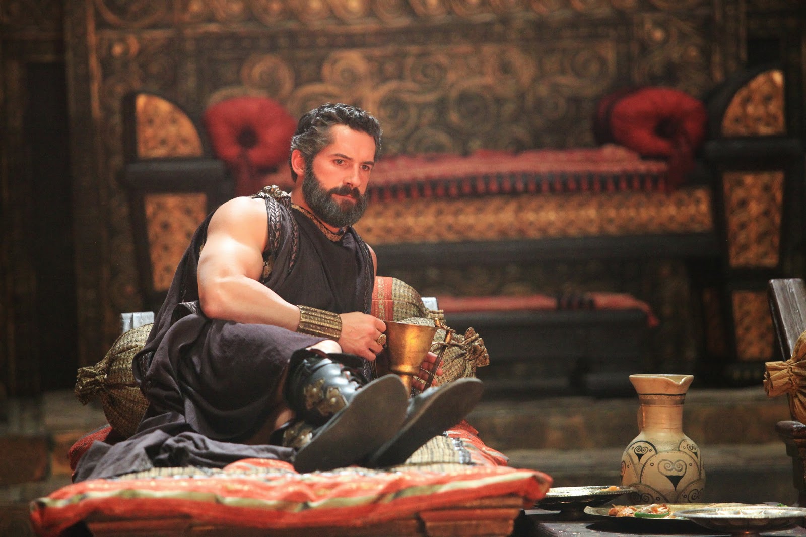 Scott Adkins, en av mina favorit-actionskådisar, är den onde kung Amfitryon. Att han är ond märks främst på att han har skägg och vrålar. I början av filmen får vi veta att han har äktenskapsproblem och frugan letar upp Zeus fruga Hera, och i en synnerligen bisarr och fånig scen ligger hon i sin säng och blir påsatt i slowmotion av den osynliga Zeus. Hon har nämligen gått med på att bära hans barn. Hon föder Herkules, som dock går under annat namn.