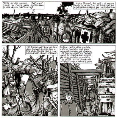 Tardi har under sin drygt 45 år långa karriär flera gånger återvänt till första världskriget – inspirerad av sin farfars chockerande upplevelser som soldat; berättelser hans farmor berättade – farfadern satt enligt Tardi tyst. ”Skyttegravskriget” är ett av Tardis absolut främsta album, kanske hans främsta – och jag vill påstå att det är ett av de bästa seriealbum som någonsin gjorts. Ska du bara köpa ett seriealbum i år, är det det här. (Fast varför bara köpa ett?)