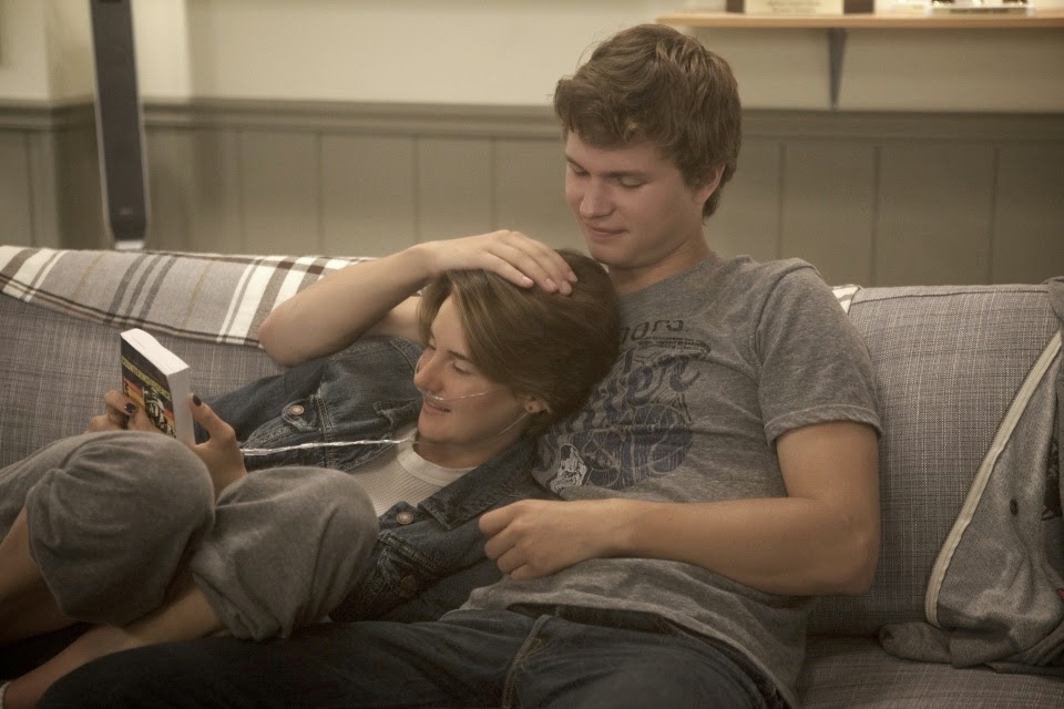 Sextonåriga Hazel, som spelas av 23-åriga Shailene Woodley från DIVERGENT, är den döende flickan. Han har konstant slangar i näsan och kånkar runt på sin tunga syrgastub. Laura Dern (som ser väldigt gammal ut nuförtiden) och Sam Trammell är hennes föräldrar. Hazel är intelligent, intellektuell, och förhållandevis glad och positiv, men hon har inga vänner och sitter mest hemma. Morsan skickar iväg henne på olika aktiviteter och senast i raden är en kyrka där cancerdrabbade ungdomar träffas. Hazel tycker att stället är astöntigt, men en dag träffar hon den äldre killen Gus – han är nitton och spelas av tjugoårige Ansel Elgort (som även han var med i DIVERGENT); Woodley är alltså flera år äldre än sin motspelare. Det får mig att tänka på damen som spelar Cary Grants morsa i I SISTA MINUTEN; hon var i Grants ålder. Gus har haft skelettcancer och har därför en benprotes, men han kom till mötet främst för att stötta sin kompis Isaac (Nat Wolff), som håller på att bli blind.