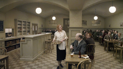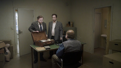 Jag såg de två första delarna i trilogin i Cannes och jag tyckte att DU LEVANDE var bättre än den första delen; den var mycket mer positiv och, ja, levande. Men eftersom filmerna består av till synes fristående tablåer och är gjorda i samma stil, med samma estetik, har jag svårt att hålla dem isär; att komma ihåg till vilken film scenerna hör. Häromdagen slog det mig att man i princip kan ta alla de här scenerna, samt Roy Anderssons kortfilmer, och blanda vilt och stuva om, och så få man en ny film. EN DUVA ser förstås precis likadan ut och i framtiden lär det bli ännu svårare att hålla filmerna isär. Dessutom påminner den näst sista scenen i EN DUVA; en scen om svarta slavar som torteras inför en uttråkad överklasspublik, om Anderssons kortfilm HÄRLIG ÄR JORDEN från 1991.