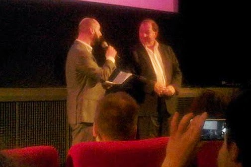 | Roy Andersson intervjuas innan visningen på Spegeln i Malmö. |