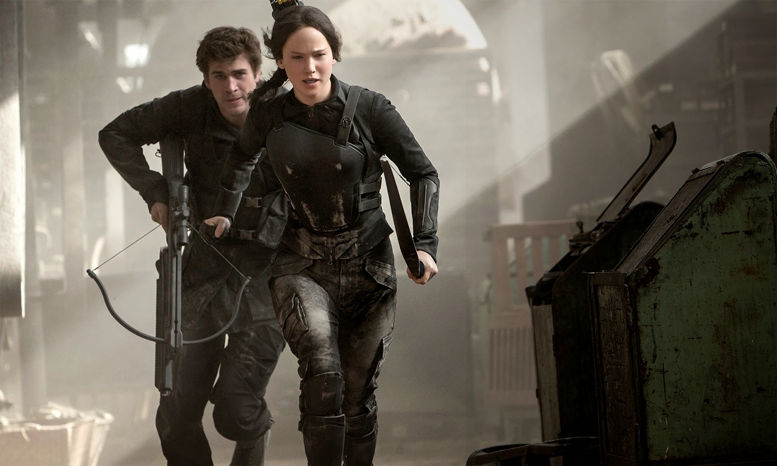 Ja, och detta är ungefär allt som händer under de två timmar filmen varar. Det händer nästan ingenting alls och det som faktiskt händer är extremt utdraget. Vi får se likartade och alldeles för långa scener flera gånger när rebellernas program spelas in. Actionscenerna är få och väldigt korta. Större delen av filmen utspelar sig antingen inomhus i mörka lokaler, eller i ruinstäder. Mitt i filmen utbrister Katniss plötsligt i en kampsång och rebellerna stämmer in, som vore detta LES MISÉRABLES.