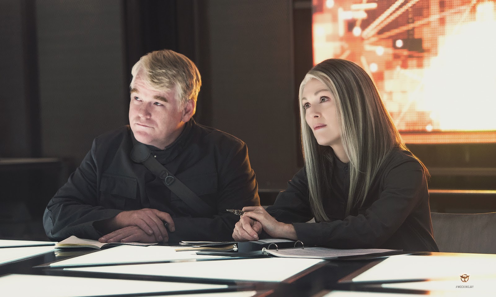 MOCKINGJAY är tillägnad Philip Seymour Hoffman, som hade spelat in nästan alla sina scener när han tidigare i år dog av en överdos heroin. Det känns konstigt att fortfarande se honom dyka upp på vita duken, men han gör förstås bra ifrån sig. Woody Harrelson återkommer som den försupne Haymitch Abernathy, Julianne Moore är rebellernas ledare, Liam Hemsworth är hunken som är olyckligt kär i Katniss, och även Elizabeth Banks och Stanley Tucci återkommer; den senares bisarra rollfigur är med alldeles för lite.
