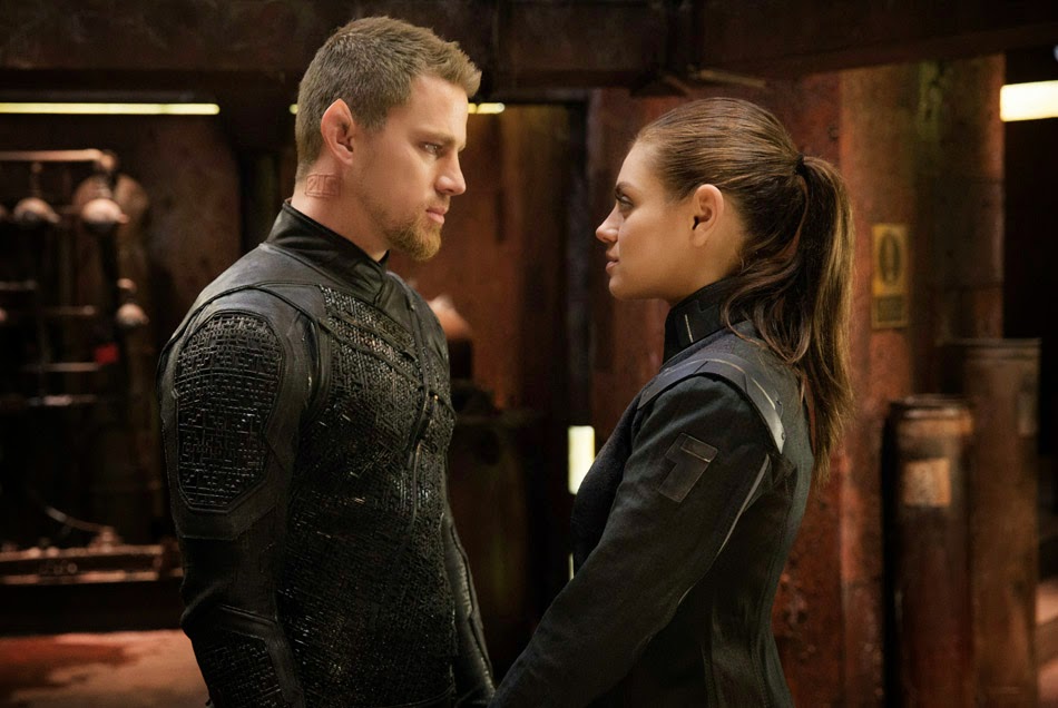 Mila Kunis är söt och sympatisk som Jupiter, men det finns ingen som helst kemi mellan henne och Channing Tatum. Hans Caine saknar personlighet helt och hållet, han är bara något slags kampsortskunnig biff som slängts in för att beskydda den förvirrade Jupiter. Och – han ser ju inte klok ut. Tatum ser ju lite lustig ut i vanliga fall med sina tätt sittande ögon och utstående öron. Tänk honom då med spetsiga öron och påklistrat bockskägg. Och flygande skor.