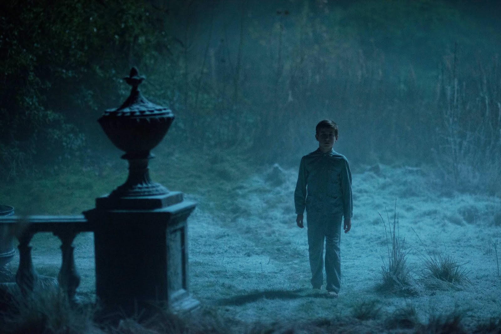 Det stora huset står sedan länge övergett; det är mörkt och förfallet, och känns inte som det mest logiska och uppenbara ställe att vistas med en skock småungar. Men så går det också som det går. Det dröjer inte länge innan Eve börjar misstänka att de inte är ensamma i huset. Lille Edward (Oaklee Pendergast), som inte talar sedan hans föräldrar dödades i en bombraid, ritar en teckning föreställande en mystisk kvinna, och han blir inlåst i husets kusliga barnkammare av barngängets tuffing. Barn försvinner, dödsfall sker; ”varje gång hon visar sig dör ett barn”, och ingen tror på Eves svammel om en svartklädd kvinna. I historien figurerar även en stilig pilot (Jeremy Irvine) som visar intresse för Eve.