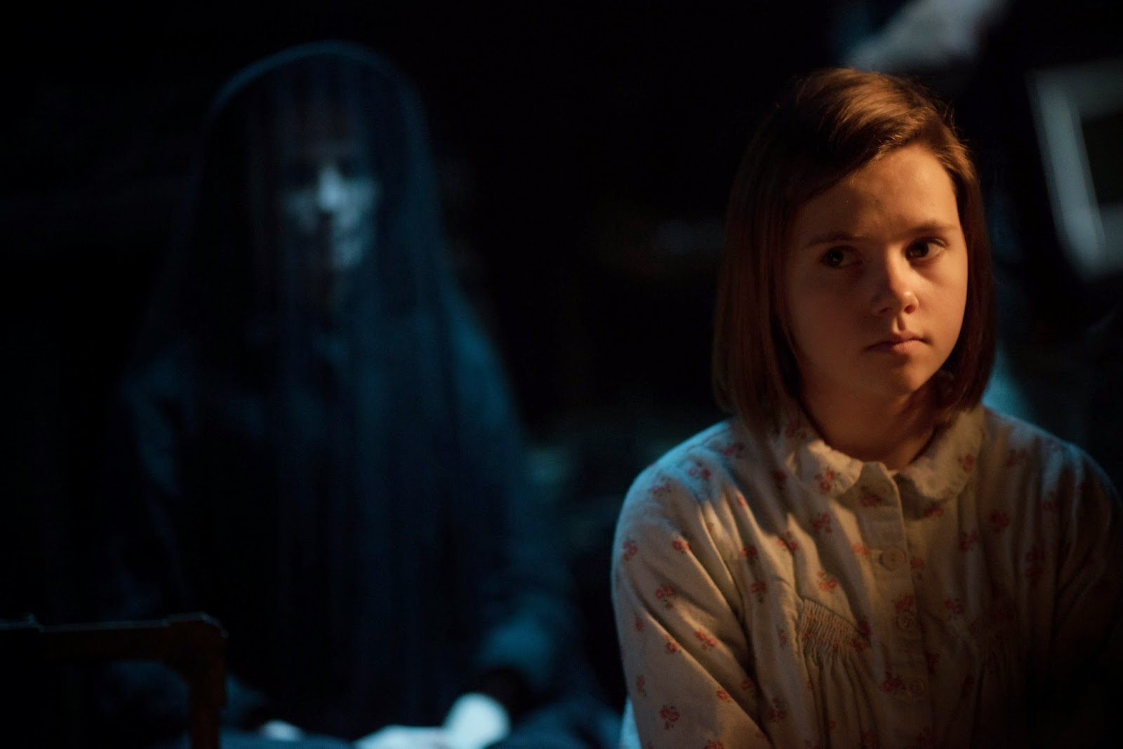 Liksom i den första filmen går det att upptäcka kvinnan i svart i ett flertal scener om man tittar noga. Ibland skymtar hennes silhuett i bakgrunden, ibland syns hennes bleka ansikte någonstans. Fast ibland gör hon förstås ordentlig entré i ett par riktigt effektiva skener. Hon klättrar ljudlöst ut ur ett hål i taket som en spindel, hon står i dörröppningar, och hon utövar sin specialitet – att med stirrande blick glida rakt in i kameran. Här finns även tre-fyra jump scares, men de är få jämfört med hur det brukar vara i sådana här filmer. ANGEL OF DEATH är förhållandevis återhållsam, vilket förstås är ett stort plus.