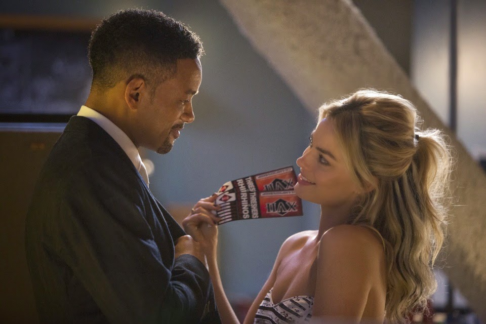 Efter pressvisningen hörde jag att några i salongen jämförde med BLÅSNINGEN, som de förstås tyckte var oändligt mycket bättre. Jag har inte sett BLÅSNINGEN på åtminstone trettio år och minns ingenting av den, men det var säkert en både smart och rolig film. FOCUS – Nicky säger flera gånger att det är viktigt att fokusera när man gör det de gör – är varken smart eller rolig. Kupperna de utför är för det mesta ohyggligt långsökta och knappast genomförbara. I synnerhet en märklig blåsning går i lås enbart på grund av ren och skär tur, även om Nicky förklarar hur det gått till och att det var minutiöst planerat. Saker och ting liksom bara händer i den här filmen, det är orealistriskt och otrovärdigt på ett sätt jag inte köper och som mest känns irriterande. Humorn inskränker sig till några unkna sexskämt.