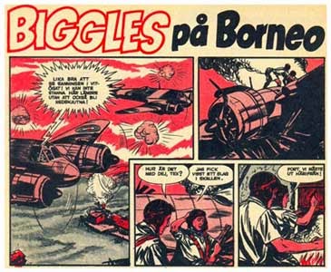 Nå. Förutom alla de här serierna producerade alltså Göransson en hel del bokomslag och illustrationer. Många av dem var för B. Wahlströms ungdomsböcker; de äldre utgåvorna av Sivar Ahlruds böcker om Tvillingdetektiverna cirkulerade fortfarande när jag var barn, liksom många andra gamla bokserier. Göransson försåg flera flotta historiska fackböcker med illustrationer och han fortsatte att publicera sig långt efter pensionsåldern.
