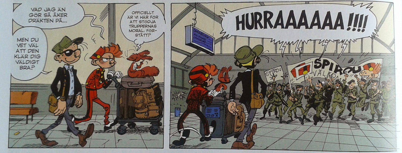 Bitvis är serien våldsam som en modern actionserie; lite väl våldsam får jag nog säga – jag associerar inte Spirouserien med mängder av automatvapen och missiler. Men – här finns gott om roliga inslag och det är exemplariskt tecknat och berättat. Extra kul är det att vår gamle favorit Gaston plötsligt dyker upp.