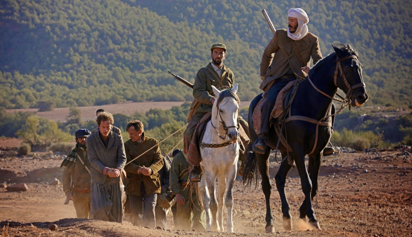 När filmen öppnar tänker jag på MAD MAX – vad nu, är jag kvar i ökenlandskapet? Nej, det här är ett annat, kargt landskap. Det är mitt ute i ingenstans i Algeriet 1954. Den danske amerikanen Viggo Mortensen spelar spanjoren Daru, som pratar franska. Han är lärare och lär små arabiska barn att läsa och skriva. En dag dyker det upp några karlar som har med sig en fånge; Mohamed (Reda Kateb), anklagad för att ha mördat sin kusin. Daru ska föra Mohamed till rättvisan och traskar iväg med honom. Under färden lär de känna varandra och blir vänner, men faror hotar hela tiden. Arga bybor är på jakt efter Mohamed för att ge igen för mordet på kusinen. Algeriska rebellstyrkor dyker upp. Franska trupper dyker också upp och skjuter på allt som rör sig.